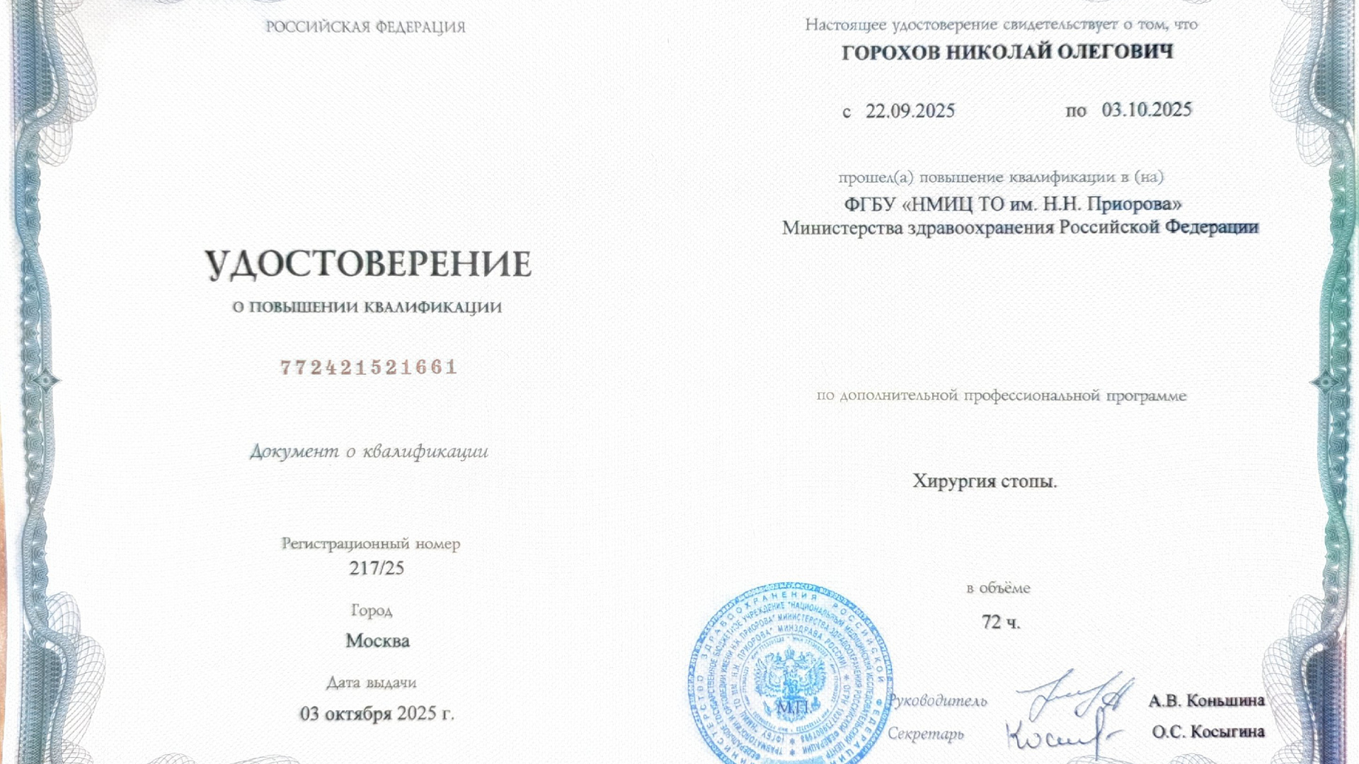 Хочу выразить благодарность доктору Горохову Николаю Олеговичу за внимательный подход к пациенту, готовность помочь даже в собственный выходной день.