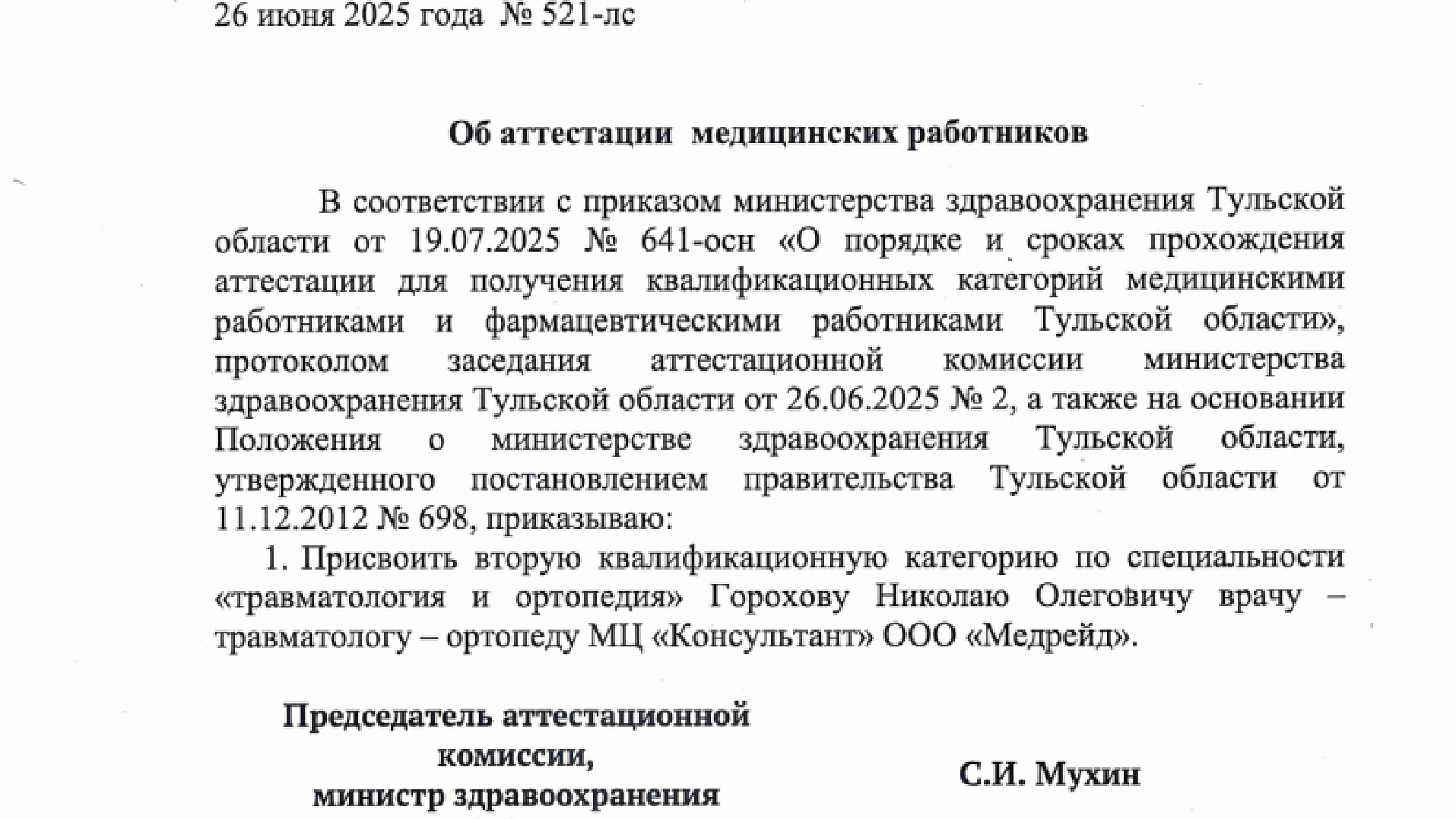 Хочу выразить благодарность доктору Горохову Николаю Олеговичу за внимательный подход к пациенту, готовность помочь даже в собственный выходной день.
